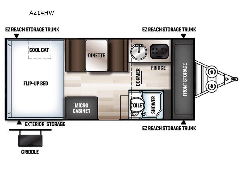A214=Hard Side Dormer w Built in Toilet & Shower Cassette-10,000K A/C Unit-Furnace-Microwave-3 Burner Stove-Water Heater w Outside Shower-20gal Fresh Water Tank-4 Stabilizer Jacks-Stereo-CD Player-Alloy Wheels.