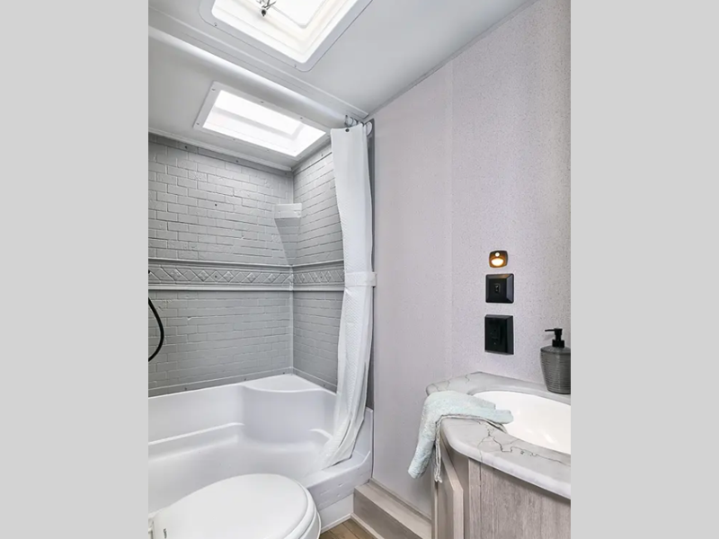 Sleeps 4 Length 16 ft Ext Width 7 ft 6 in Ext Height 10 ft 5 in Hitch Weight 380 lbs GVWR 3865 lbs Dry Weight 2664 lbs Cargo Capacity 1200 lbs Fresh Water Capacity 34 gals Grey Water Capacity 30 gals Black Water Capacity 30 gals Number Of Bunks 2 Available Beds RV Queen Refrigerator Type 12V Black Glass Refrigerator Size 4.3 cu ft Cooktop Burners 2 Shower Size 32" x 40" Number of Awnings 1 LP Tank Capacity 20 lbs Water Heater Capacity 6 gal Water Heater Type GE Gas/Electric AC BTU 13500 btu Awning Info 9' Axle Count 1 Shower Type Shower w/Seat Similar Floorplans