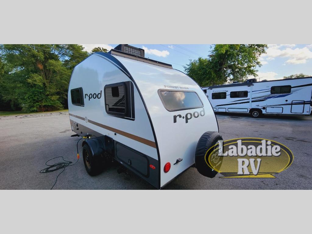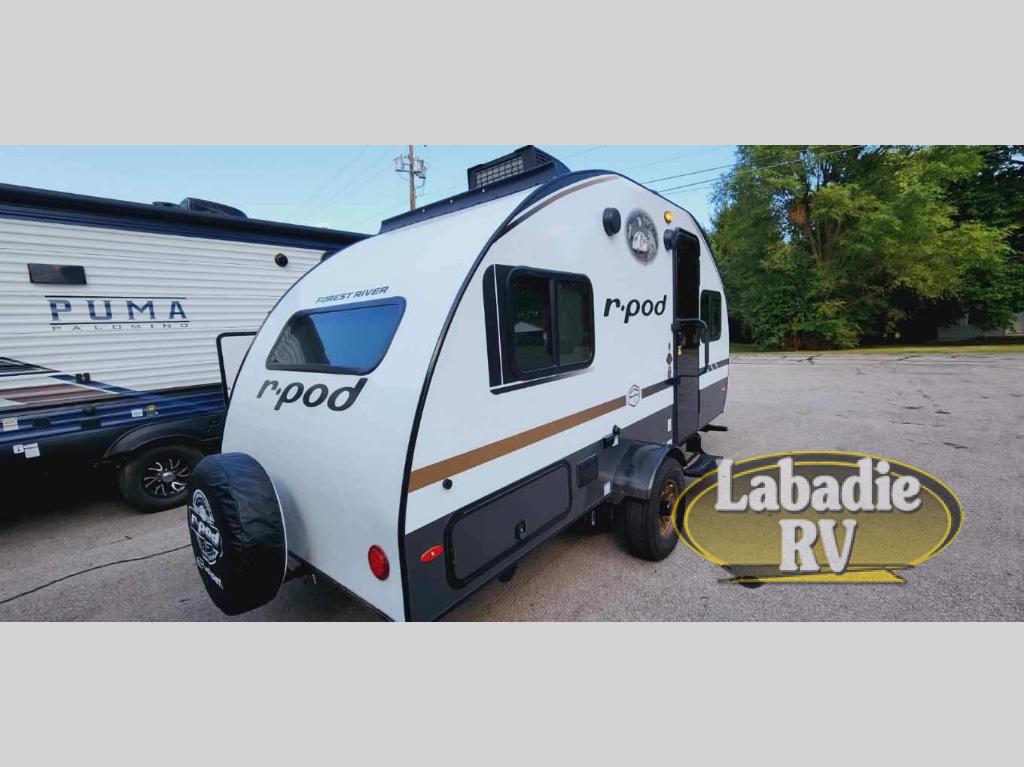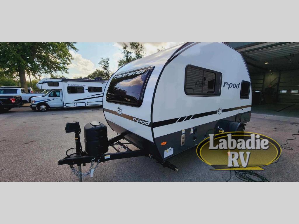 With any R-Pod travel trailer by Forest River, you will enjoy affordable luxury at the lowest tow weight in its class! There is a sealed underbelly with forced heat, a curved dual-pane acrylic front window with a bug screen and night shade, plus a large roof mounted solar panel for off-grid capabilities. The 15K A/C unit will keep you comfortable during the summer camping months, and the tankless water heater will provide endless hot showers after hiking, biking, swimming and more! Each model also includes a black glass friction hinge entrance door, roof ladder prep, exterior motion lighting, plus a hot and cold exterior spray port to wash off sand from the beach. Inside, you'll enjoy seamless Surf-X kitchen countertops, blackout roller shades, and a central vacuum system for hassle-free cleaning!