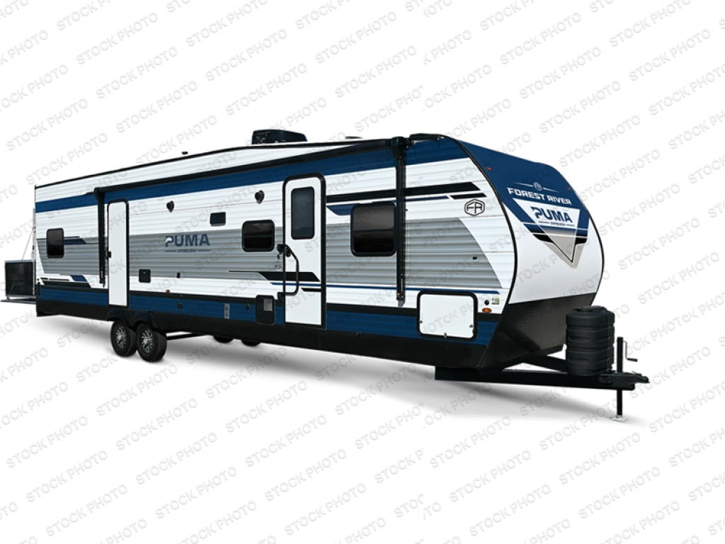 Each Puma Ambush toy hauler travel trailer by Forest River is constructed with a durable tub surround, super lube axles for smooth towing, and a rugged front diamond plate. You will enjoy premium amenities, including a plush bedspread and pillows, LED lighting, and a bath skylight. Cook like a five-star chef with the 21" oven and range hood and indulge in entertainment with the AM/FM/Bluetooth stereo and outside speakers. Plus, you will love the convenient night roller shades, the outside shower ideal for outdoor enthusiasts, and so much more! Whether hauling motorcycles, ATVs, or gear for your next outdoor escapade, these toy hauler travel trailers are your ultimate adventure companion.