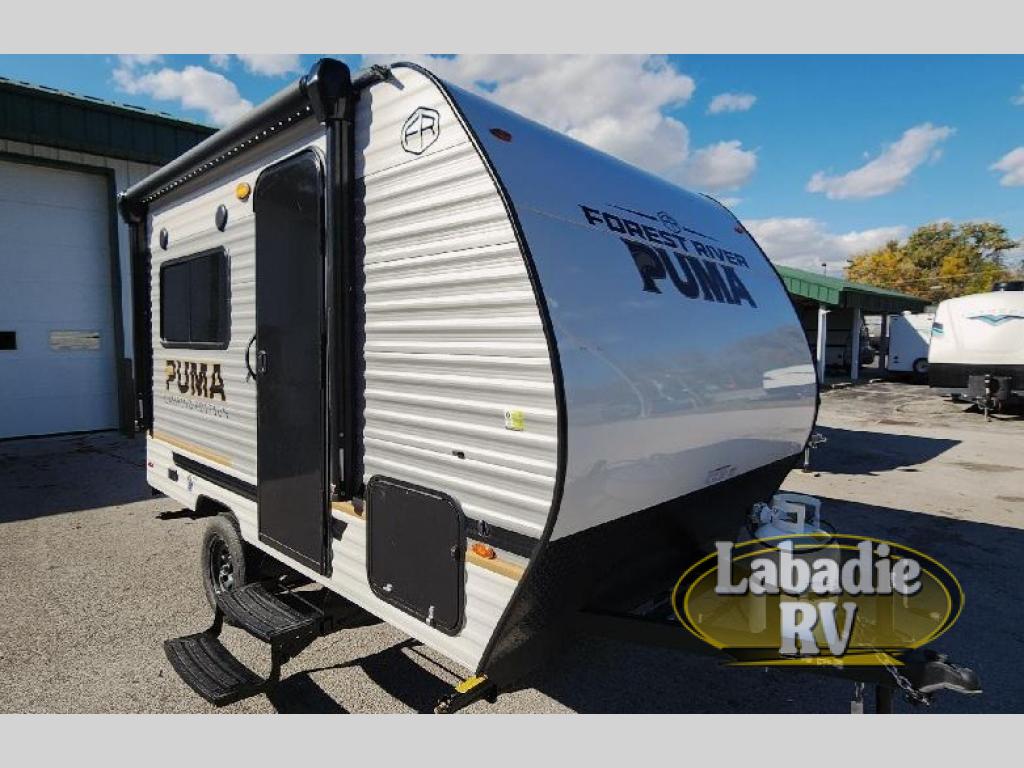 The Puma Camping Edition by Palomino offer an affordable travel trailer for rookie campers or seasoned RVers! They are built with 5/8" tongue and groove plywood flooring and a front diamond plate for added protection. There are also exterior magnetic baggage door latches, back up camera prep, a battery disconnect. Head inside to find Thermofoil countertops with a smooth drop edge, bedroom USB ports and outlets, and pleated shades in the living room.