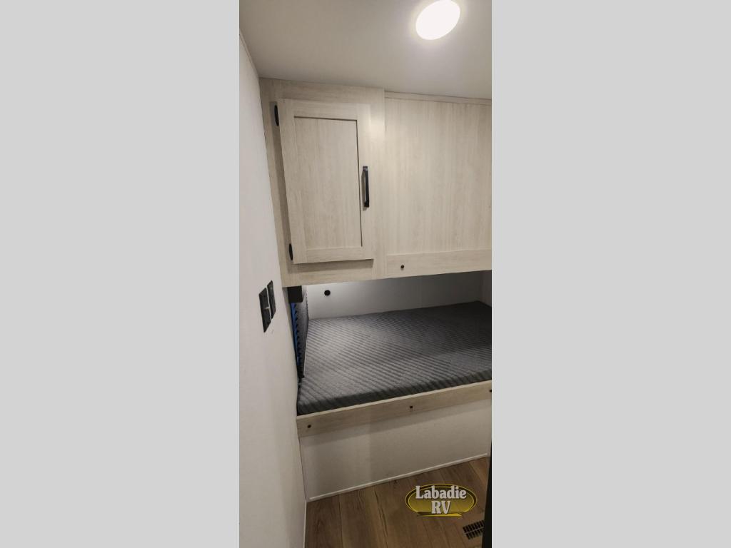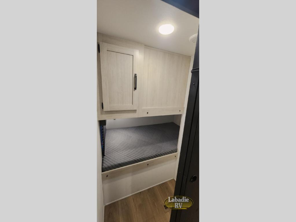Your whole crew will love camping in this travel trailer since everyone can enjoy their own private space. The rear bunkhouses feature a private lower bunk room plus a private upper bunk room, each with their own door and a linen closet for storage space. The front master bedroom includes an RV queen bed, dual shirt closets, and easy access into the walk-thru bath. Head to the combined kitchen and living area to make dinner in the full kitchen, dine around the U-shaped dinette slide, and enjoy the fireplace! Outside, an optional micro kitchen with a grill can be added if you choose, and you'll find outside storage compartments to keep all your gear secure!
