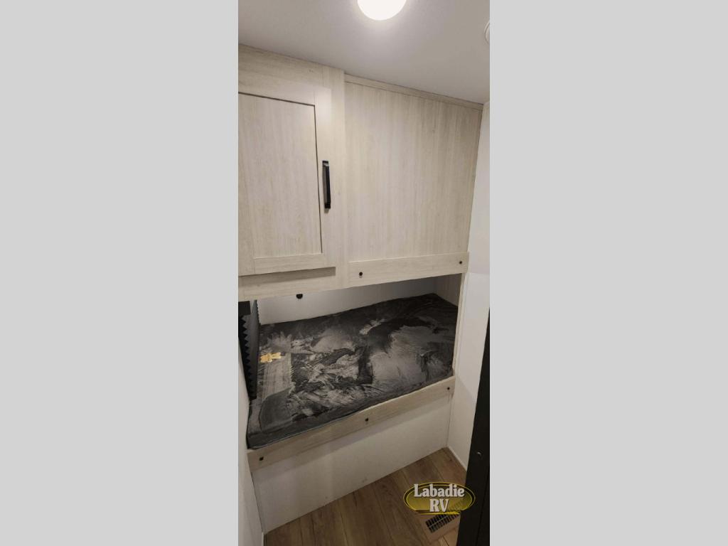 Your whole crew will love camping in this travel trailer since everyone can enjoy their own private space. The rear bunkhouses feature a private lower bunk room plus a private upper bunk room, each with their own door and a linen closet for storage space. The front master bedroom includes an RV queen bed, dual shirt closets, and easy access into the walk-thru bath. Head to the combined kitchen and living area to make dinner in the full kitchen, dine around the U-shaped dinette slide, and enjoy the fireplace! Outside, an optional micro kitchen with a grill can be added if you choose, and you'll find outside storage compartments to keep all your gear secure!
