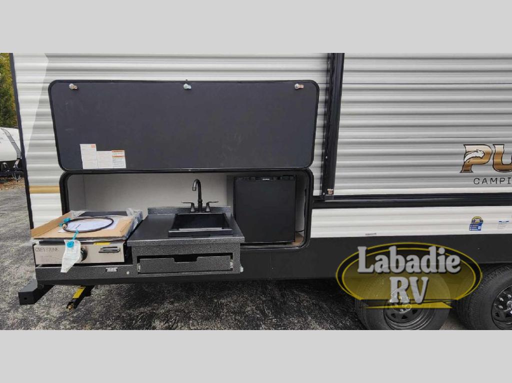 2-Camping Edition w Appliance & Kitchen Package-Power Tongue Jack-Solid Entry Step-Black Tank Flush-Battery Disconnect-Night Shades-Black Glass 12V Refer-5/8" Plywood FlooringForest River Puma Camping Edition travel trailer 283BHCE highlights: