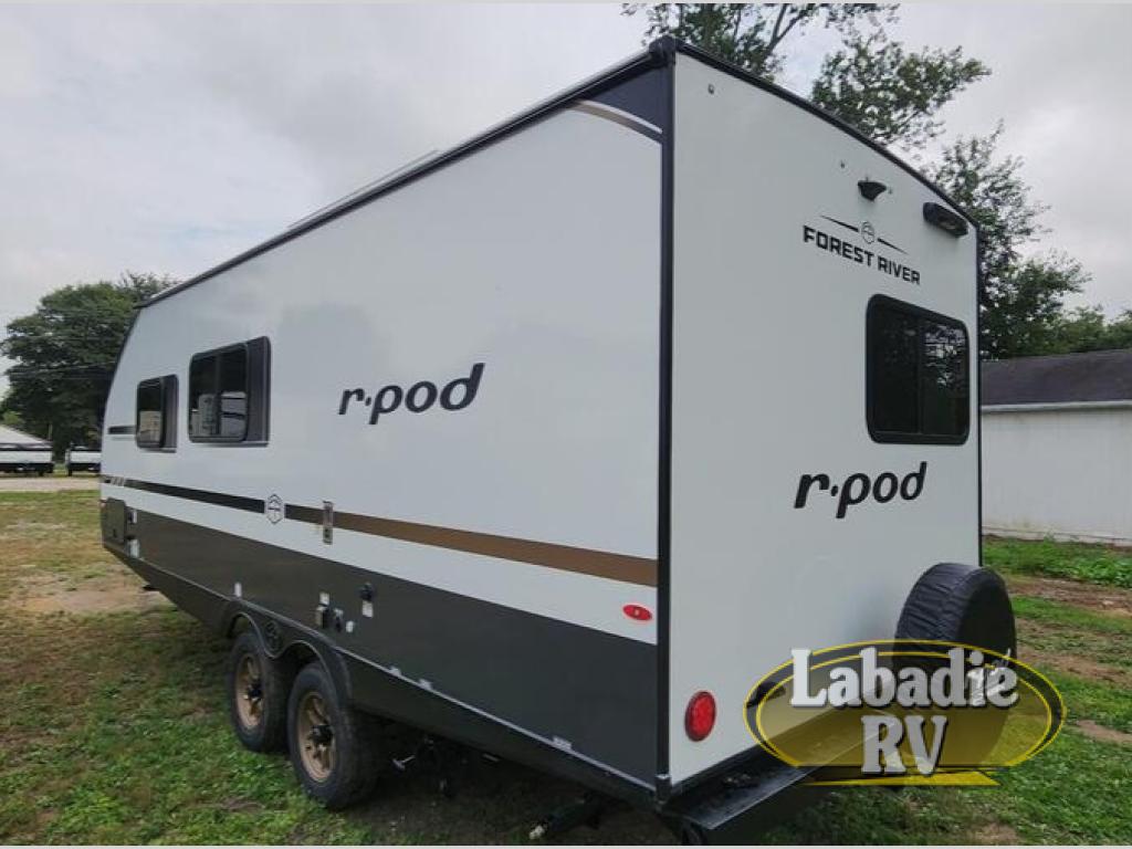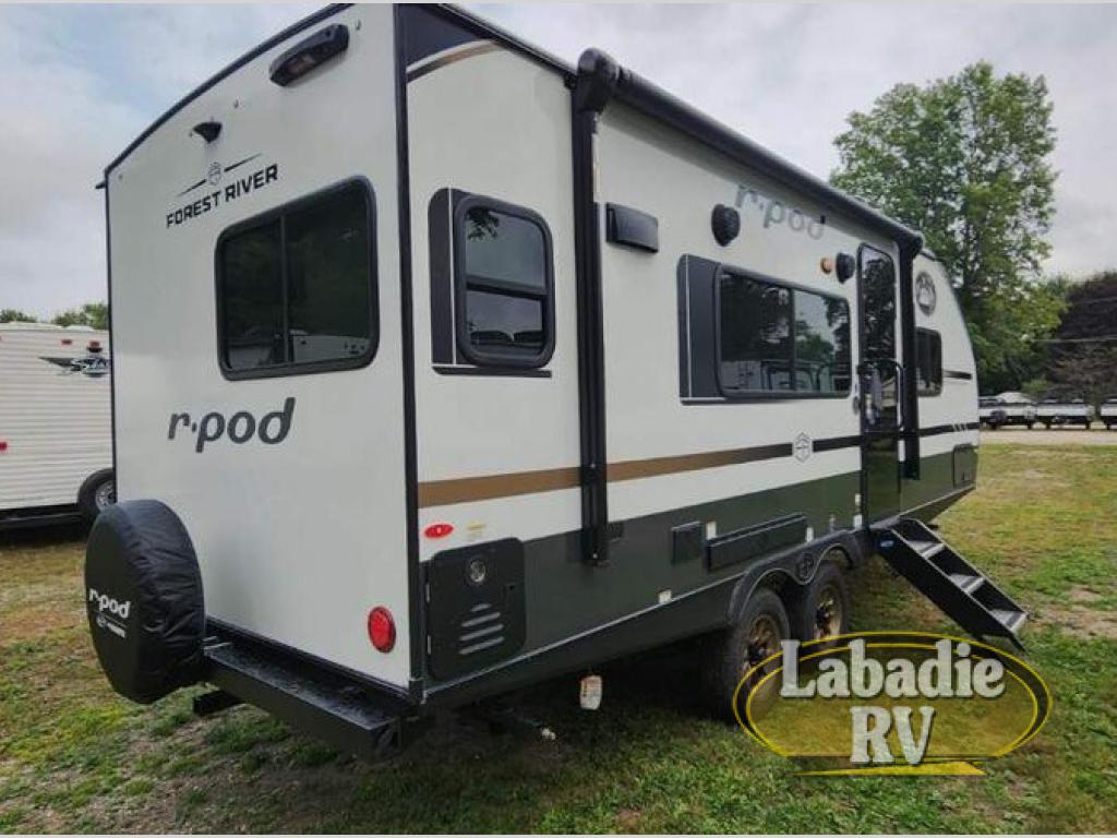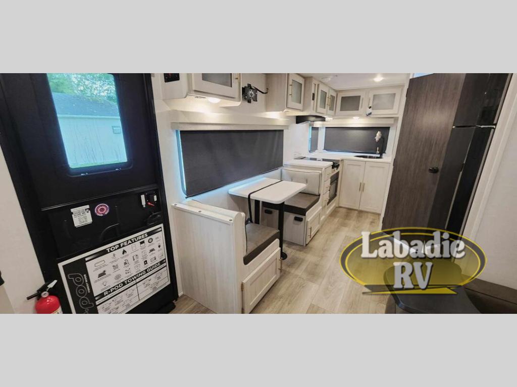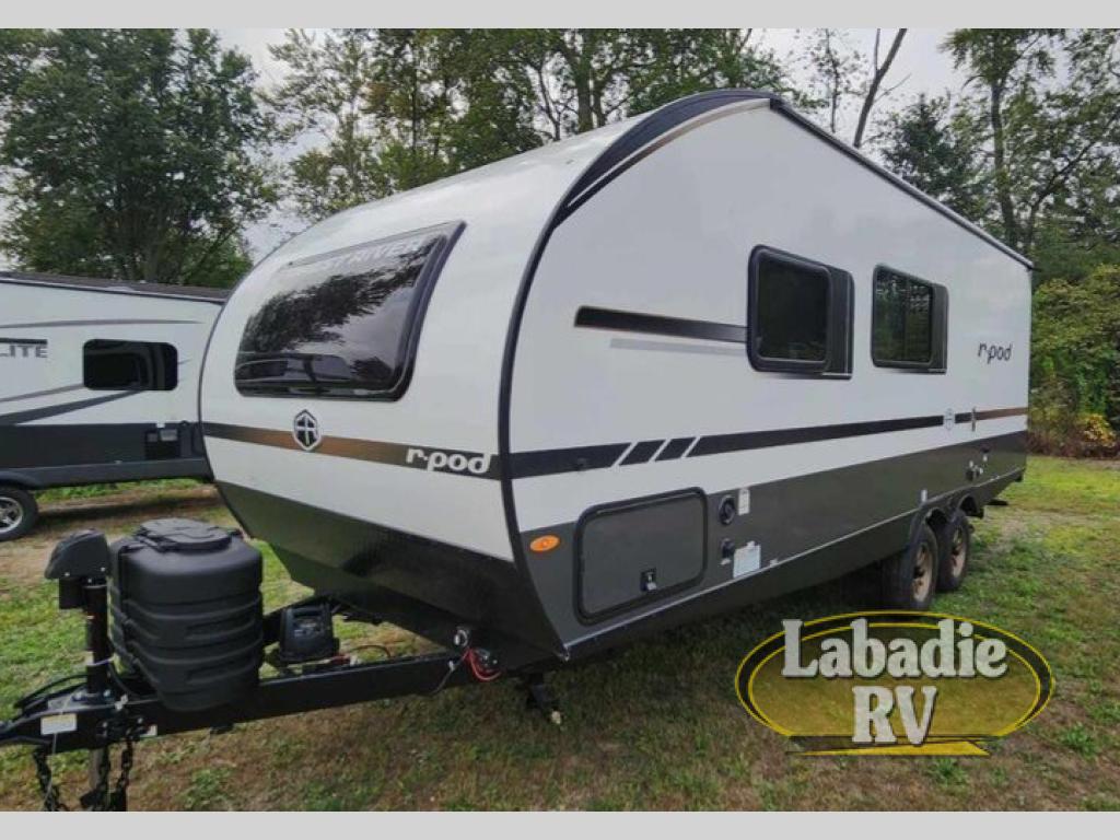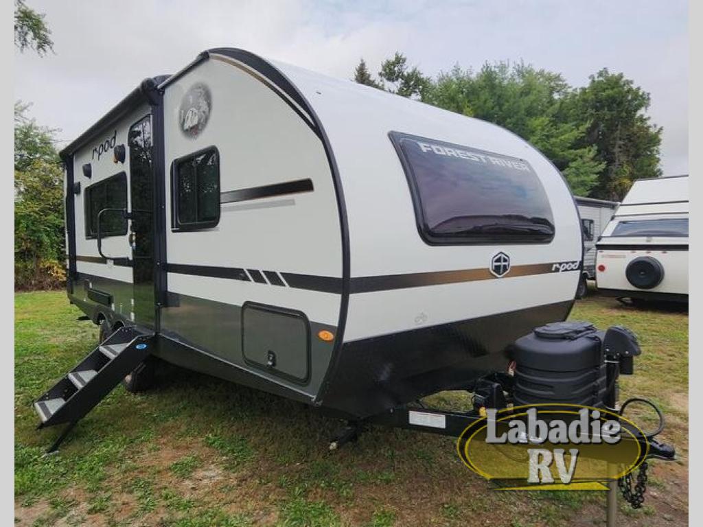 With any R-Pod travel trailer by Forest River, you will enjoy affordable luxury at the lowest tow weight in its class! There is a sealed underbelly with forced heat, a curved dual-pane acrylic front window with a bug screen and night shade, plus a large roof mounted solar panel for off-grid capabilities. The 15K A/C unit will keep you comfortable during the summer camping months, and the tankless water heater will provide endless hot showers after hiking, biking, swimming and more! Each model also includes a black glass friction hinge entrance door, roof ladder prep, exterior motion lighting, plus a hot and cold exterior spray port to wash off sand from the beach. Inside, you'll enjoy seamless Surf-X kitchen countertops, blackout roller shades, and a central vacuum system for hassle-free cleaning!