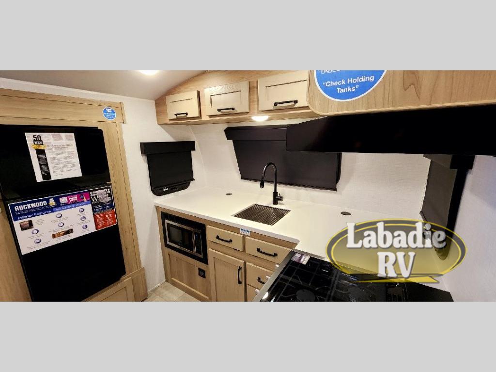 With any Rockwood GEO Pro travel trailer by Forest River you will enjoy easy towing, durable construction, and off-road capabilities with a fully laminated roof! Each model is constructed with complete composite wall construction for added strength and durability, and Dexter® axles that will make towing easier than ever. Inside, you'll find sleek back up camera prep for added security, a refrigerator and a microwave, plus many other interior amenities that will make you feel at home on the road.