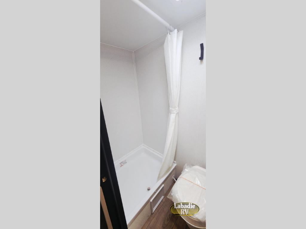 This travel trailer includes everything you need for camping trips at the lake. You'll sleep great each night on the front RV queen bed, or you can choose the optional Murphy bed with a sofa if you need more seating space during the day. The chef of your group can make meals on the two burner cooktop or in the microwave oven, then you can dine around the U-shaped dinette slide. A full rear bath includes a 36" x 30" shower, a toilet, vanity, plus a medicine cabinet to keep your things organized.
