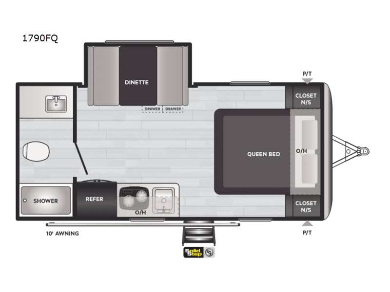 18FQ-Camping w Ease & Step Up Package-Power Awning w LED Lights,10 CU FT Residential Refer-13.5 BTU Roof A/C-Bluetooth Stereo w Outside Speakers-Outside Shower,4 Stabilizer Jack-Power Tongue Jack-Solid Step-Spare Tire & Carrier Loaded