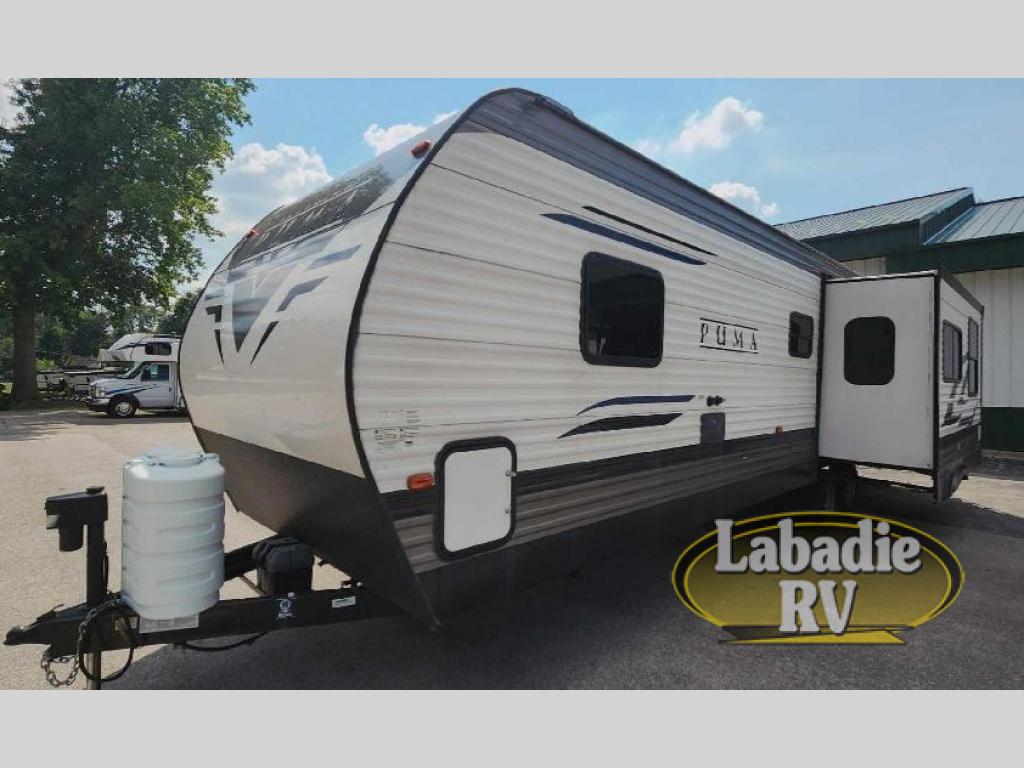 You know it's a great day when it starts with a Palomino Puma travel trailer, fifth wheel, or toy hauler because nothing else is better suited for adventure! There is a Puma for every lifestyle, and there are plenty of features that will enhance each of those lifestyles too. The Puma's construction is better built for lasting performance. The Puma has an AlphaPly roofing membrane, a King HD TV antenna, a smooth, aerodynamic radius front metal with bold exterior graphics, residential-grade carpet with pad on slide outs, and a 5/8" Araucoply plywood floor decking. The Puma also comes packed with value since it gives you the features you need while traveling, like an electric awning with LED lights, preparations for WiFi, a Bluetooth stereo, an enclosed underbelly, an outside shower, and exterior speakers. Plus, the roller shades will help you keep the interior dark and private when you need it to be.