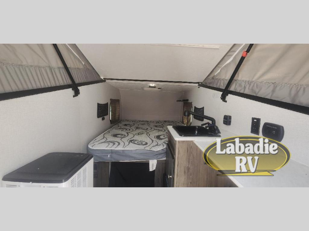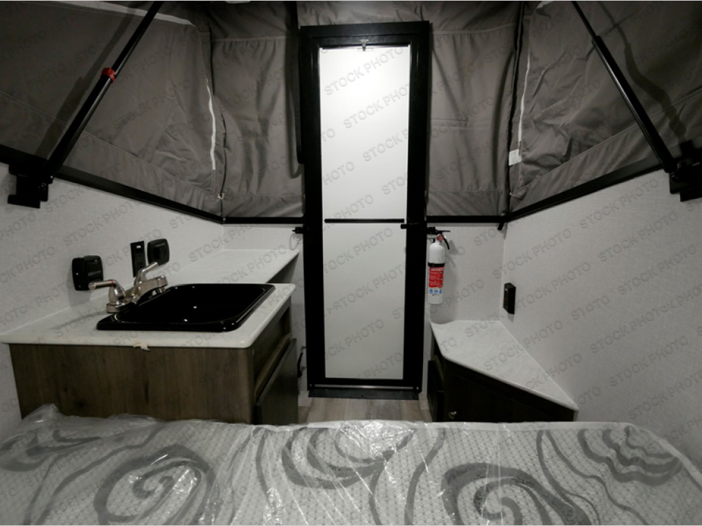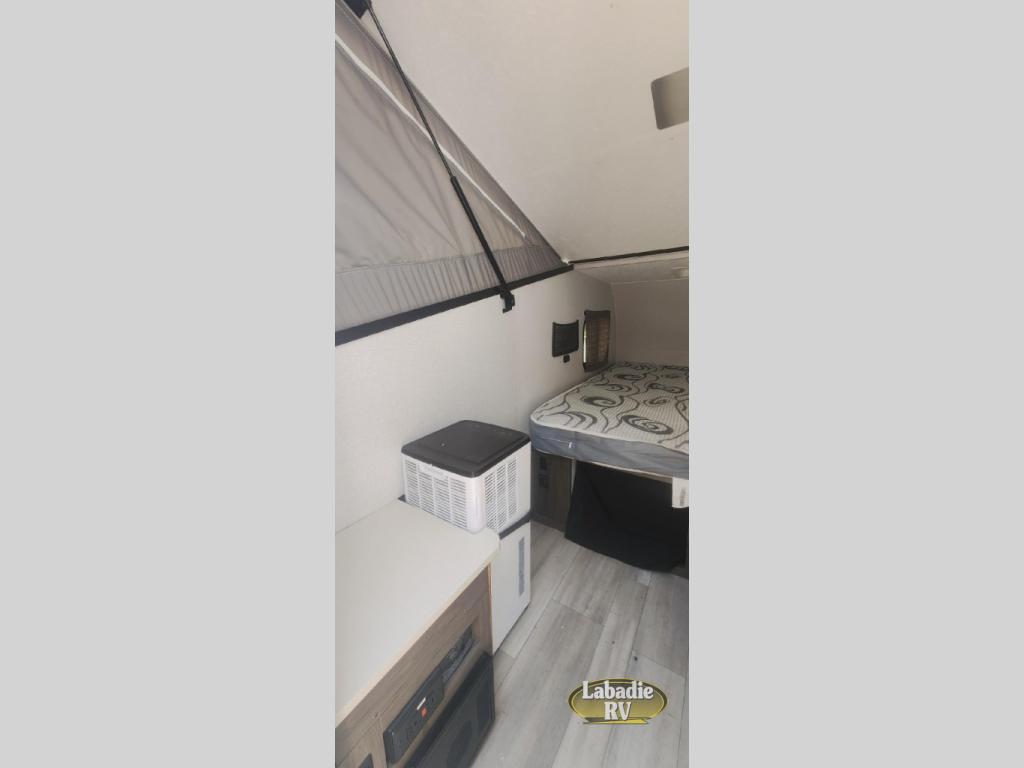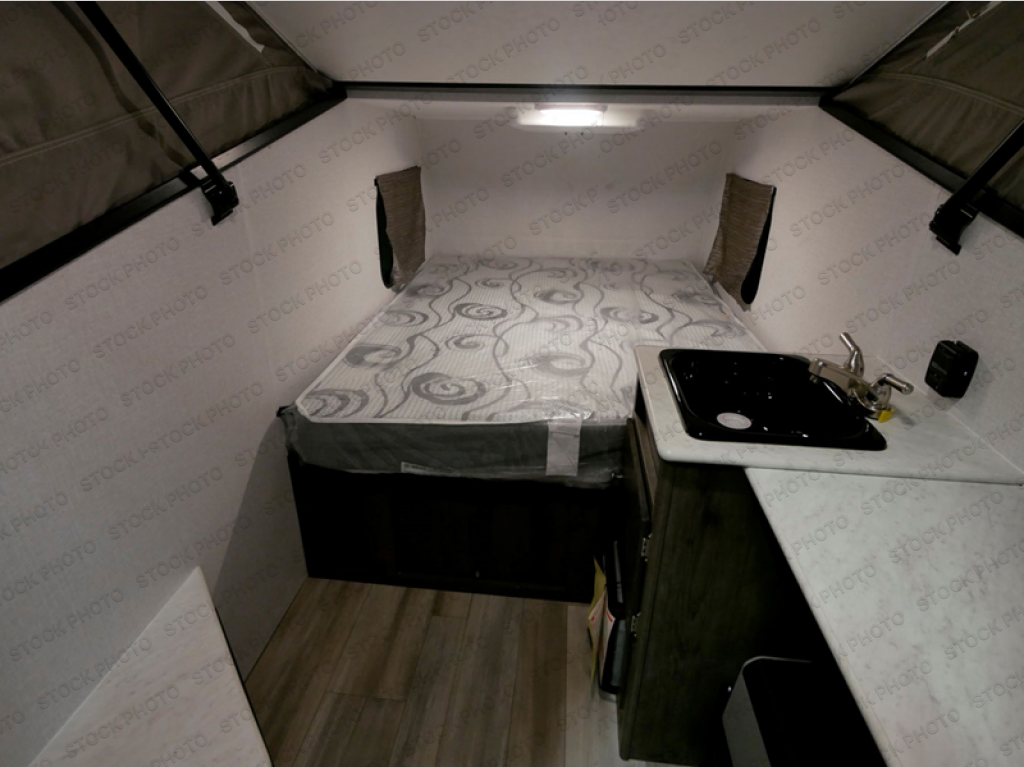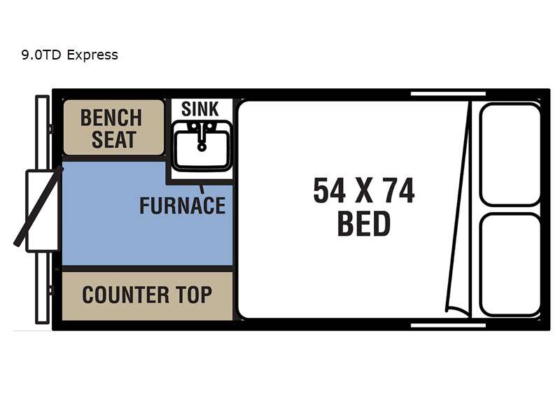 When you enjoy sleeping above ground while camping and getting away quickly, take this Express with you! Not only is it easy to tow, it is easy to store! You will have a 54" x 74" bed to sleep on, a residential laminated countertop to place your cellphone and keys, and a bench seat to easily take your shoes off. You can stand upright and walk around as well. Some options you might want to add include the optional "Jack It" bike rack so you can ride some trails, a 13,500 BTU air conditioner to stay cool on those hot summer days, and a Thetford Porta Potti so you don't have to use public facilities. There is even an optional Off-Road package for even more convenience!
