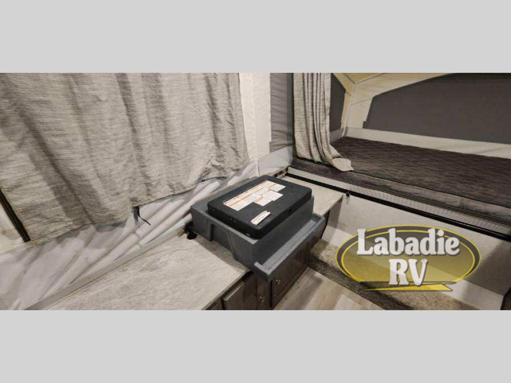 Retire the family tent for one of these Forest River Flagstaff MAC Limited Series folding pop-up campers! They might be light on features, but they don't lack in comfort or quality. Each model comes with a heated mattress on the bunk ends, wood look flooring, and a flip-down galley with storage for dishes and snacks. The carry-out range will come in handy to grill juicy burgers while breathing in fresh air while under an awning to keep you protected rain or shine.