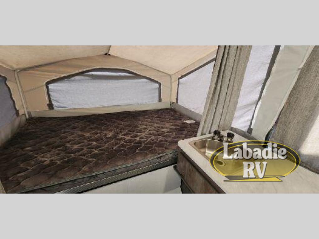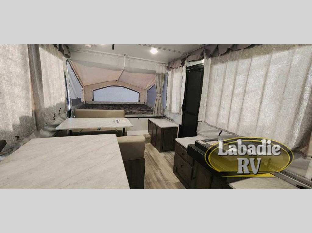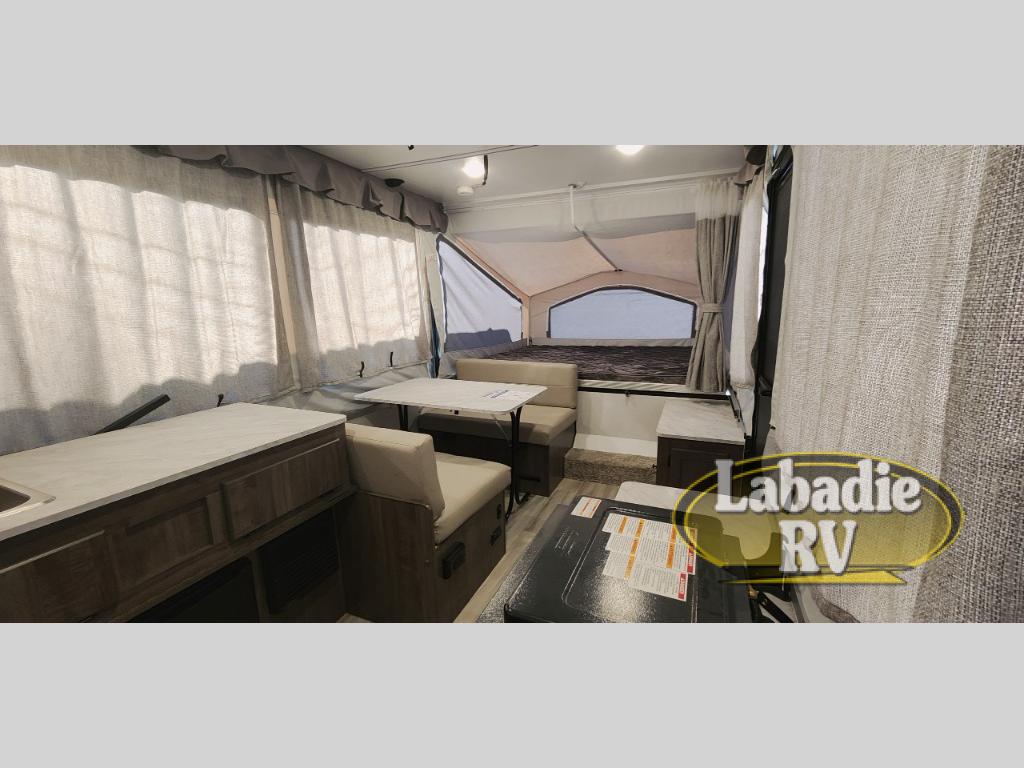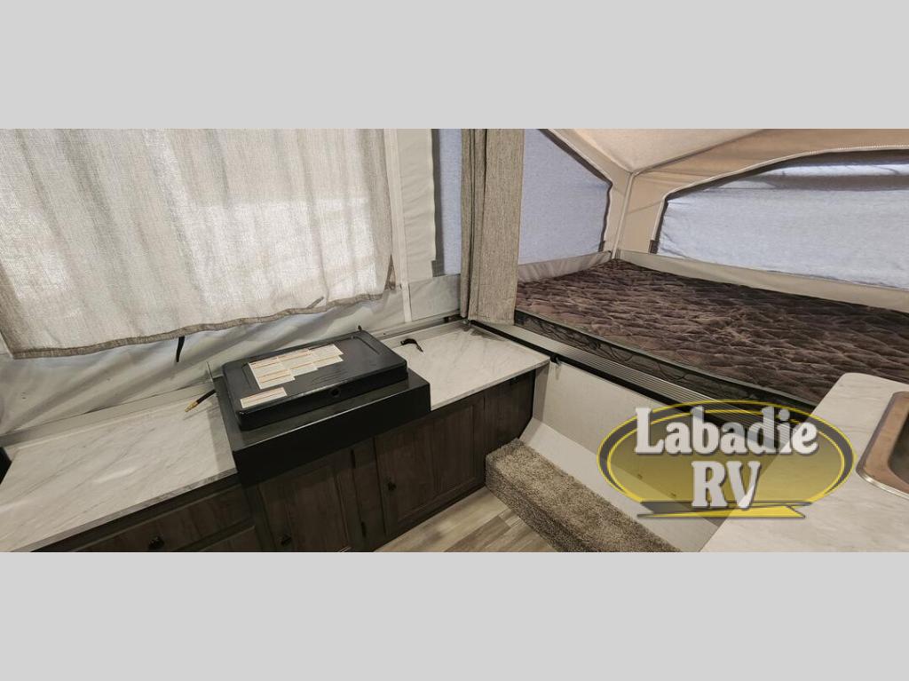 With any Limited Series folding pop-up campers by Forest River you will enjoy simple, yet convenient camping features. There are nitrogen filled tires and leaf spring axles to provide a smooth tow from home to campground, and the rear stabilizer jacks with sand pads add stability once you're all set up. There is also a one-piece screen door, an electric water pump, and a power lift system for added convenience. The interior includes LED lights, an inside/outside two burner stove, residential style cabinet doors, and a wood look floor you are sure to love.