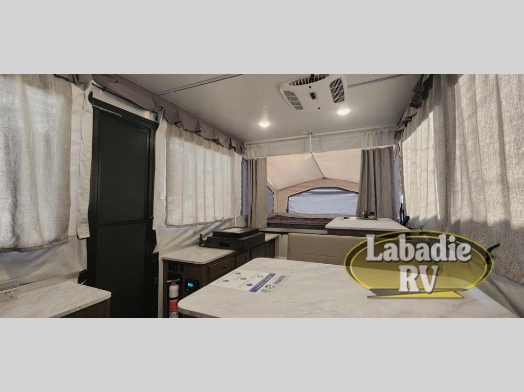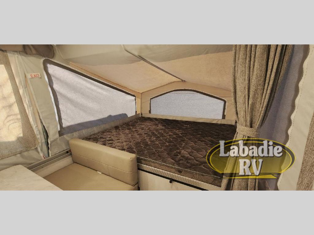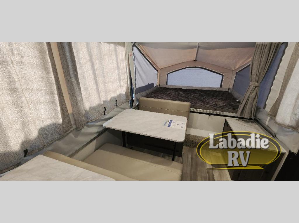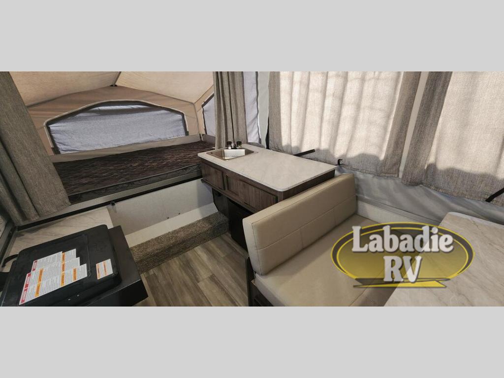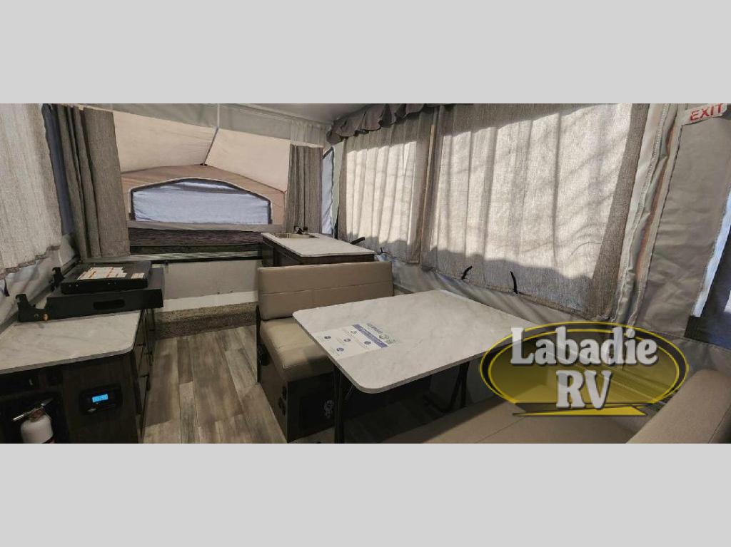 With any Limited Series folding pop-up campers by Forest River you will enjoy simple, yet convenient camping features. There are nitrogen filled tires and leaf spring axles to provide a smooth tow from home to campground, and the rear stabilizer jacks with sand pads add stability once you're all set up. There is also a one-piece screen door, an electric water pump, and a power lift system for added convenience. The interior includes LED lights, an inside/outside two burner stove, residential style cabinet doors, and a wood look floor you are sure to love.